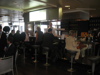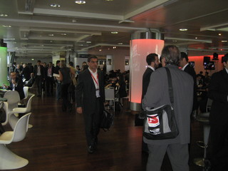 Ecco qualche immagine di quello che era il Karrèment e di come sta cambiando forma. Sedie e tavoli, uomini d’affari, affollano quello che una volta era la pista da ballo. Il bar accanto al vecchio ingresso della discoteca è, per questo evento, punto ristoro e quello acccanto alla terrazza è bar per cocktail, bevande, caffetteria e sandwich.