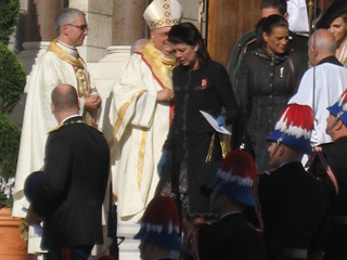 Poco dopo le 10.00 del mattino di fronte alla Cattedrale di Monaco e ad una schiera di pubblico, giornalisti e fotografi giungono, scortate, le macchine dei Principi. L'attesa è sempre grande ma quest'anno la curiosità e gli sguardi erano tutti per Charlene. Distinta e sorridente, in un tailleur Armani con un cappello a tesa larga color nocciola, ha fatto il suo ingresso in Cattedrale seguendo il Sovrano S.A.S Alberto II e le sorelle, le Principesse Carolina e Stéphanie, come detta il protocollo. Prima della cerimonia, un timido applauso, rompe il silenzio che sempre precede l'ingresso dei Principi in Cattedrale. Quella di oggi per Charlene è tra le prime importanti apparizioni nella veste ufficiale di fidanzata del Sovrano e futura Principessa di Monaco.