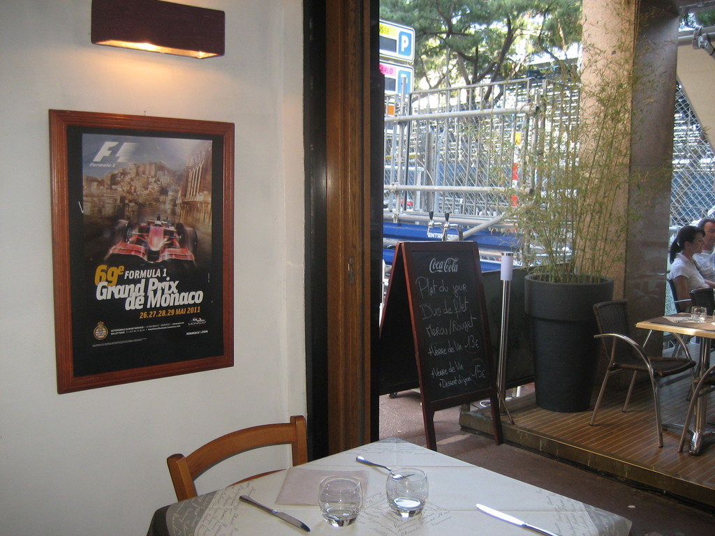 Siamo andati a scoprire cosa propone uno dei ristorantini affacciati sul circuito. "Chez Bacco" si trova poco più avanti della partenza del Gran Prmio e il titolare ci dice di affrettarci se vogliamo prenotare un posto. Le proposte? Ben più di una: si può scegliere il forfait per pranzare da venerdì a domenica, o soltanto un giorno, oppure solo la domenica, giorno del GP. La scelta per guardare il GP di Formula Uno è tra gli interni e gli esterni del ristornate: chi sceglie la parte interna per vedere la gara dovrà poi recarsi sulle apposite tribune esclusive riservate al piccolo ristorante; chi sceglie di pranzare nel dehor potrà stare comodamente seduto a pranzo tutto il tempo ammirando la gara.