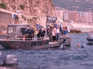 La mattina inzia alle 11.30: una decina di imbarcazioni dal Porto di Fontvieille ci aspettano per condurci di Fronte al Museo Oceanografico. L'arrivo di Pierre Frolla in elicottero è una vera festa. Da 5 anni a Monte-Carlo non si ripeteva più la tradizione della mitica bandiera a scacchi recuperata in immersione. E'stato lo stesso campione monegasco ad ideare e lanciare questa iniziativa che per due anni, nel 2005 e nel 2006, ha accompagnato e dato "il via" simbolico al Gran Premio di Formula Uno.