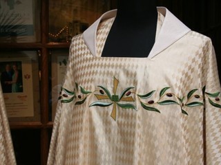 Sono stati presentati nelle socrso ore a Sanremo i paramenti liturgici che verranno impiegati nel corso della Celebrazione Eucaristica del Matrimonio di S.A.S. il Principe Alberto II di Monaco e Charlene Wittstock. Paramenti ideati da Ernesto Porri de Il Campanile arte sacra di Sanremo e realizzati dalla ditta Gamma di Felisi in Valgiano (LU).