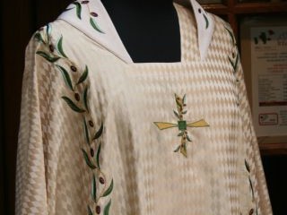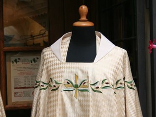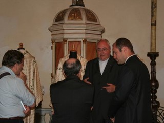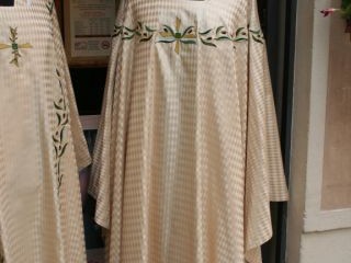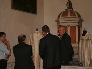 Mons. Bernard Barsi Arcivescovo di Monaco ha potuto ammirare dal vivo i due modelli di casule che saranno indossati dai concelebranti, un tipo più prezioso per i Vescovi e quelle normali per i Sacerdoti monegaschi, oltre alla dalmatica per i Diaconi. L'Arcivescovo di Monaco ha dimostrato grande apprezzamento per il risultato del lavoro artigianale svolto e ha visto come dal disegno di bozzetto si è arrivati al paramento finito.