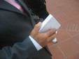 Subito dopo la cerimonia nel tardo pomeriggio di oggi, davanti ai giornalisti hanno sfilato sorridenti ed eleganti i monegaschi, oggi invitati sulla Piazza del Palazzo di Monaco per assistere alla cerimonia del matrimonio civile del Sovrano che si è svolto nella Sala del Trono. I monegaschi hanno potuto assistere al "Oui" degli sposi sugli schermi giganti allestiti all'esterno della Piazza. Ogni invitato sceso dalla piazza della rocca nel centro di Monaco, ha ricevuto in dono una scatolina bianca: la bomboniera dei Principi. Spinti dalla cuoriosità chiediamo ad un anziano signore di mostrarcene una. Si tratta di un elegante confanetto rotondo in porcellana bianca con l'emblema delle due inziali AC dorate ed all'interno un sacchettino di tulle, dove scopriamo i classici confetti.