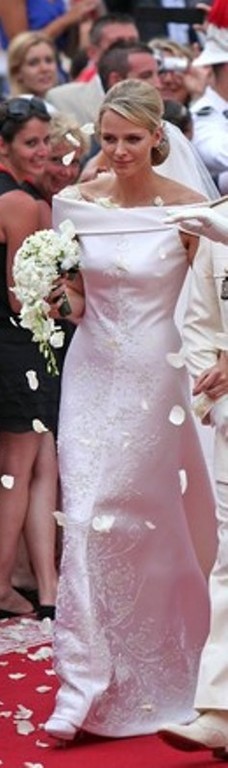 2500 ore di lavoro, 40 mila cristalli Svarovki, 20 mila gocce di madreperla, 30 mila perle dorate, 3 mila i km effettuati per le prove a Monte-Carlo, 50 metri di seta duchessa, 700 ore di ricamo, 80 metri di organza di seta ed un velo per cui sono stati impiegati in tutto 20 metri di tulle in seta ricamato. Sono questi tutti i numeri dell'abito da sposa Armani Privé che ha indossato SAS la Principessa Charlene per il suo giorno più bello.