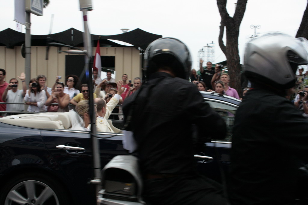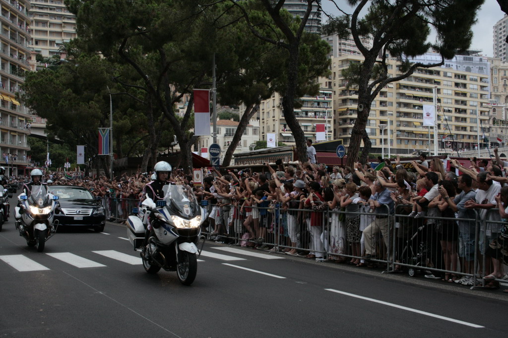 Ecco alcuni scatti presi alcuni istanti fa, per le vie di una Monaco addobbata a festa, per celebrare il matrimonio dei suoi regnanti. Bandiere monegasche e sudafricane, oltre al folto pubblico hanno regalato un colpo d'occhio davvero invidiabile.