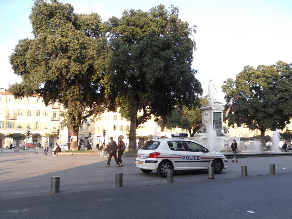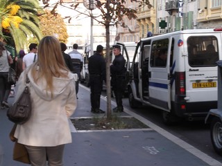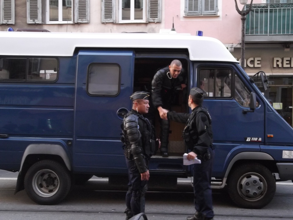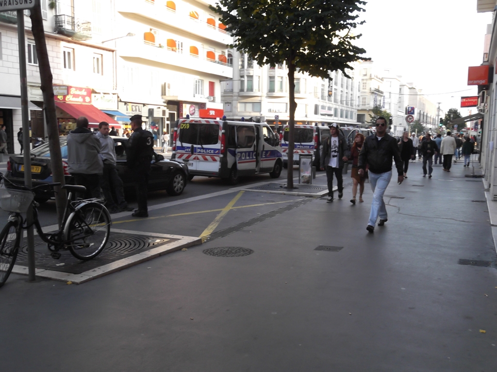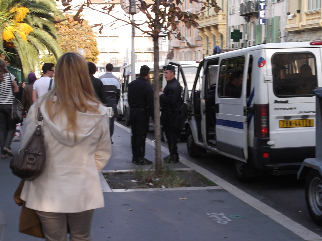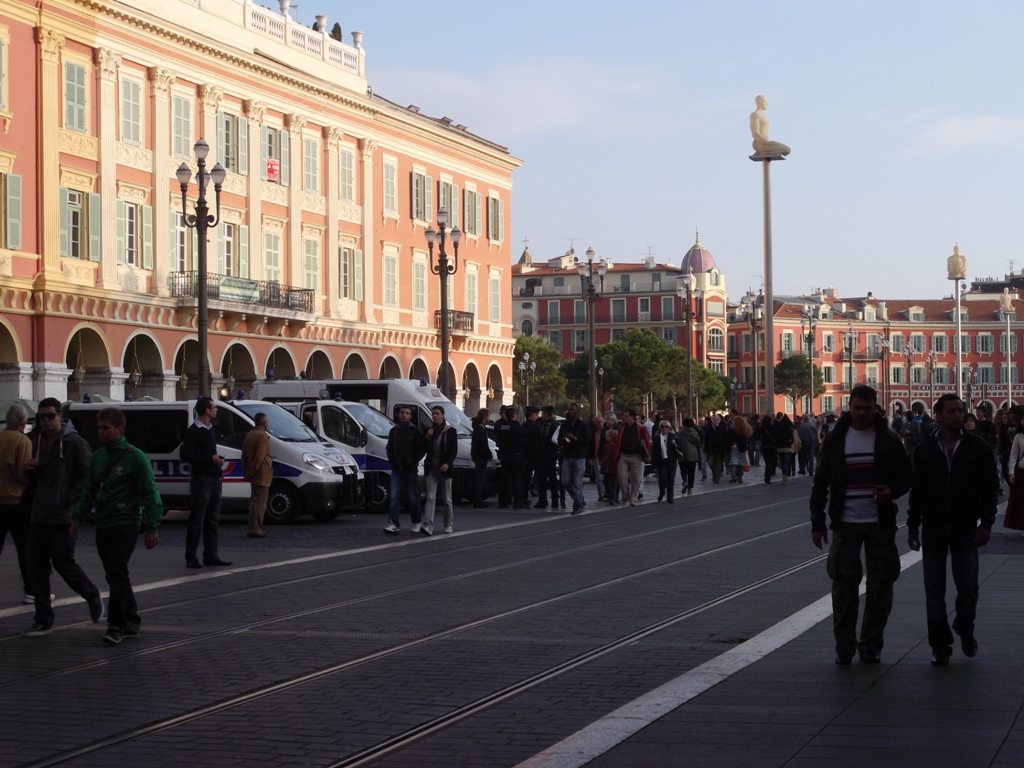 E con questo dispiegamento di forze dell'ordine, la camminata veso place Massena appare davanti ai nostri occhi così: