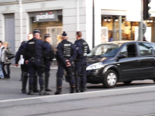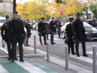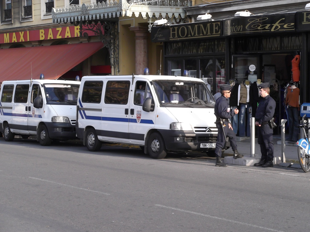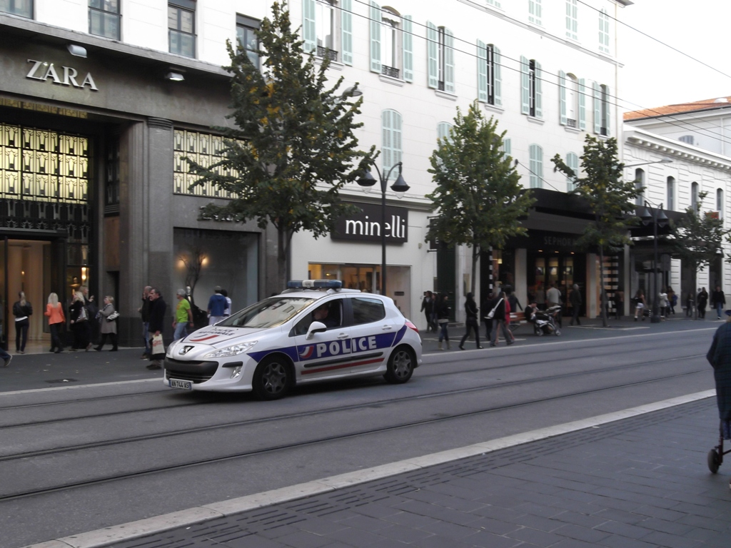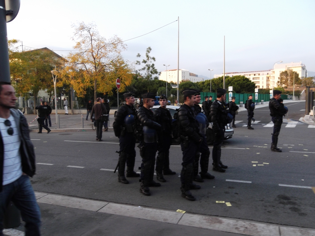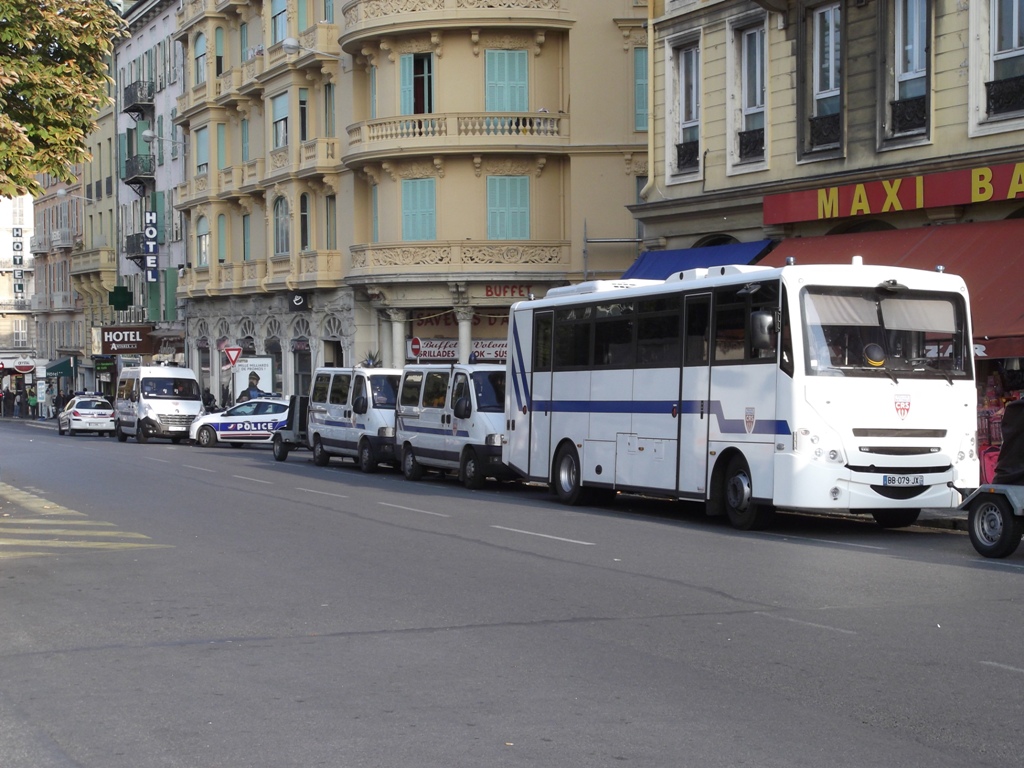 E con questo dispiegamento di forze dell'ordine, la camminata veso place Massena appare davanti ai nostri occhi così: