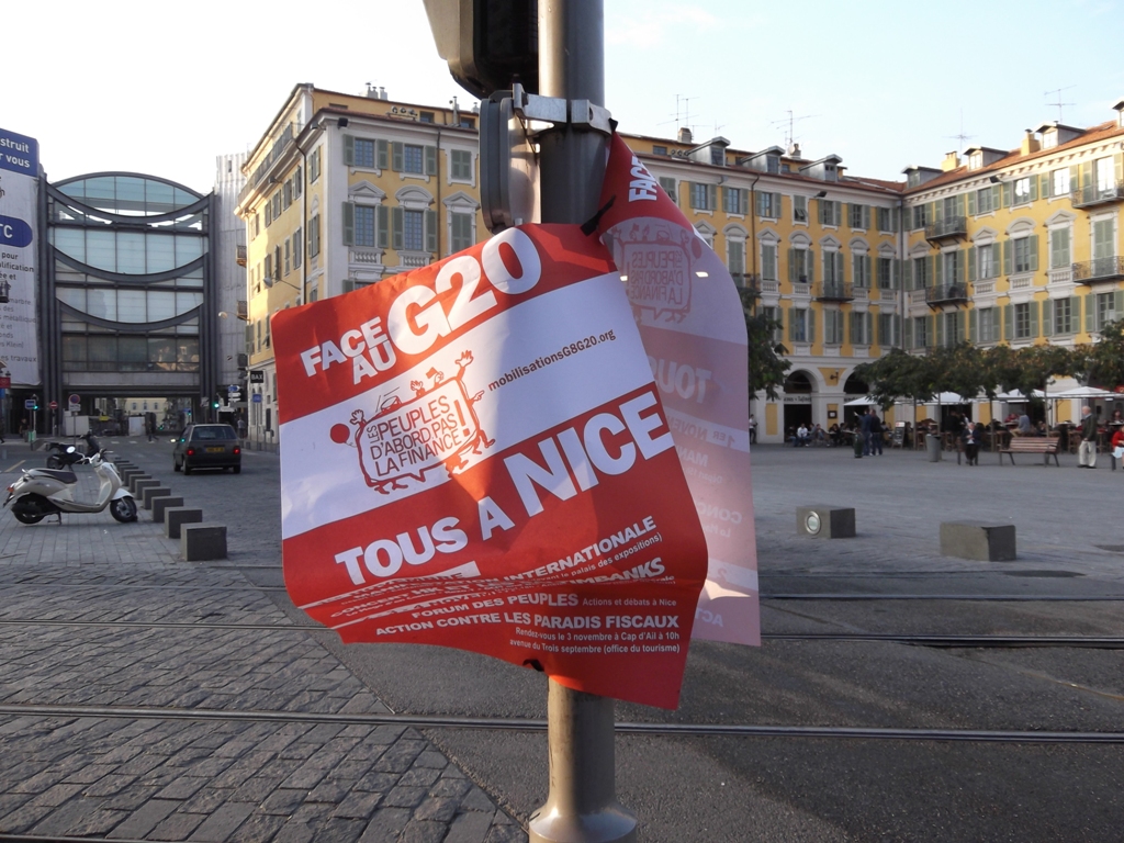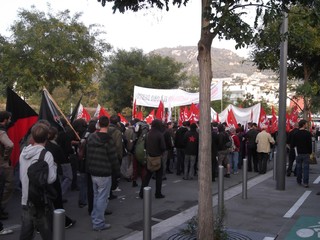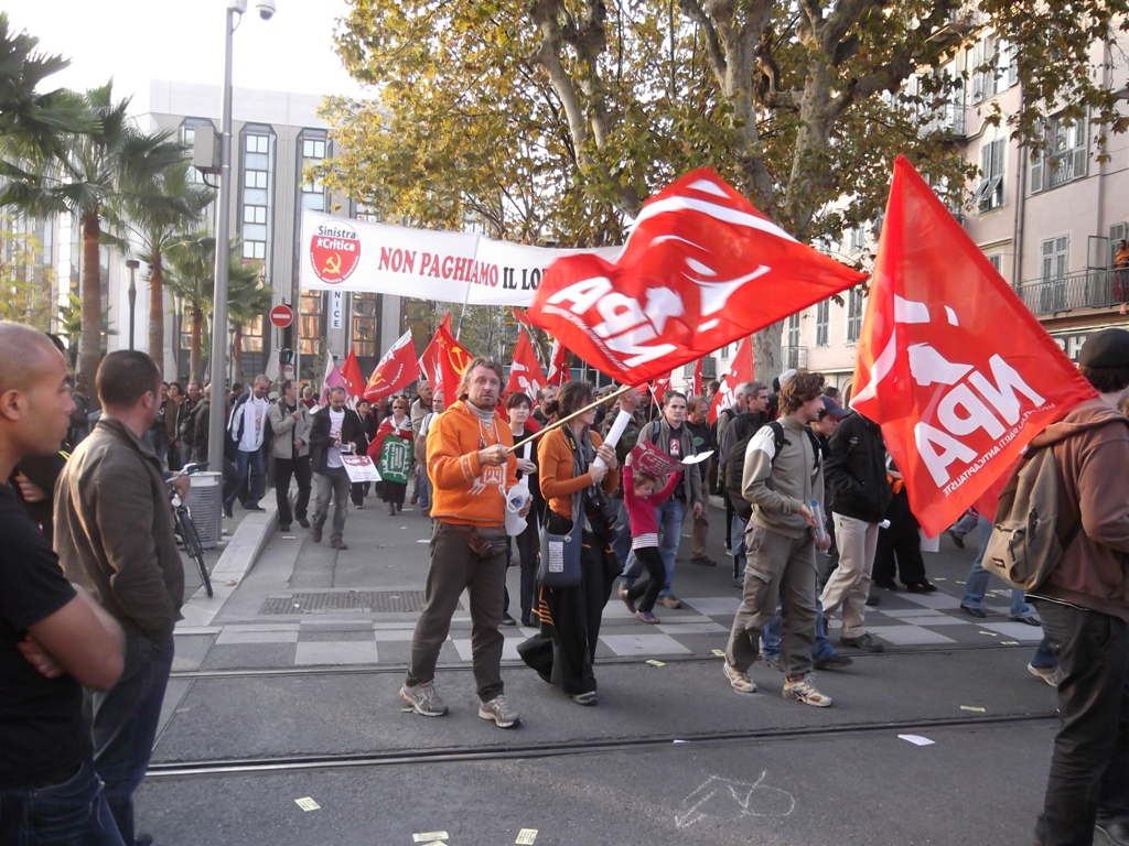 A Nizza ci aspetta la manifestazione degli intermondialisti contro il summit del G20. E' il sole a disegnare i contorni di una giornata che non sappiamo se ci riserverà delle brutte sorprese. Ma i toni dei giorni scorsi, delle forze dell'ordine italiane (Polizia di Frontiera) e francesi (Police Nationale) non hanno mai fatto trapelare allarmismi. Le premesse sono tranquille anche se ci informano dell'arresto di alcuni presunti black bloc dal Belgio. Sul treno verso Nizza attorno a noi sono molti i turisti, in particolare inglesi. Famiglie con bimbi piccoli. Al di là dei vetri scorrono le immagini della Costa francese: Cap d'Ail, Baulieu sur Mer, Villefrance sur Mer. Il sole del 1° novembre ha ritagliato ancora qualche bagno in mare.