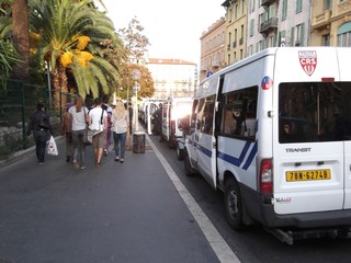 Arriviamo in Place Massena. Chiediamo dove si svolge la manifestazione. - Da qualche parte, in quella direzione - ci indica un uomo della Gendarmerie indicandoci la zona verso l'Acropolis - ma se resta qui a Massena è meglio -