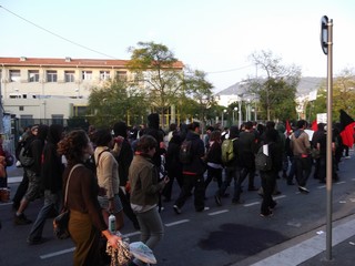 Ed eccolo il corteo. Uniforme e pacifico. Una ragazza ci sorride e viene incontro a noi porgendoci un volantino. Chiediamo ad un ragazzo italiano per cosa stanno manifestando. Ha qualche esitazione "Manifestiamo contro il G20 ed il debito pubblico. Veniamo da Genova, Torino e Milano. Il debito è il loro. Non vogliamo pagare noi"