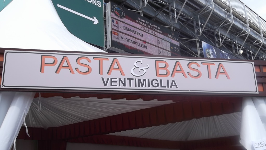 Si chiama "Pasta & Basta" è per il primo anno presente al torneo monegasco ed è l'omonimo stand di pasta del ristorante al confine con la Francia: da Ventimiglia ecco tutta la sua sorridente equipe a servire svariati tipi di pasta e champagne, in uno dei punti di ristoro del torneo di questo Montecarlo Rolex Masters 2012.