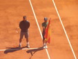 Eccoli uno di fronte all'altro Nole e Rafa sulla corte centrale del Montecarlo country Club il pathos e l'emozione cresce metre si scambiano i palleggi prima della partita. Le tribune si stanno mano a mano riempiendo. Difficile dire chi vincerà: c'è ancora molto vento, fattore che ieri non ha giocato in favore di Djokovic. Per Rafa sono 7 vittorie consecutive su questo campo, in questo torneo. Per Nole sono 7 finali in vittoria contro Rafa (da 17 mesi lo spagnolo non vince contro il serbo). L'inno monegasco ha aperto quest'ultimo match. Dalle tribune monegasche il tifo è potente e perfettamente equilibrato tra un "Vai Rafa!" e un "Grane Nole!".