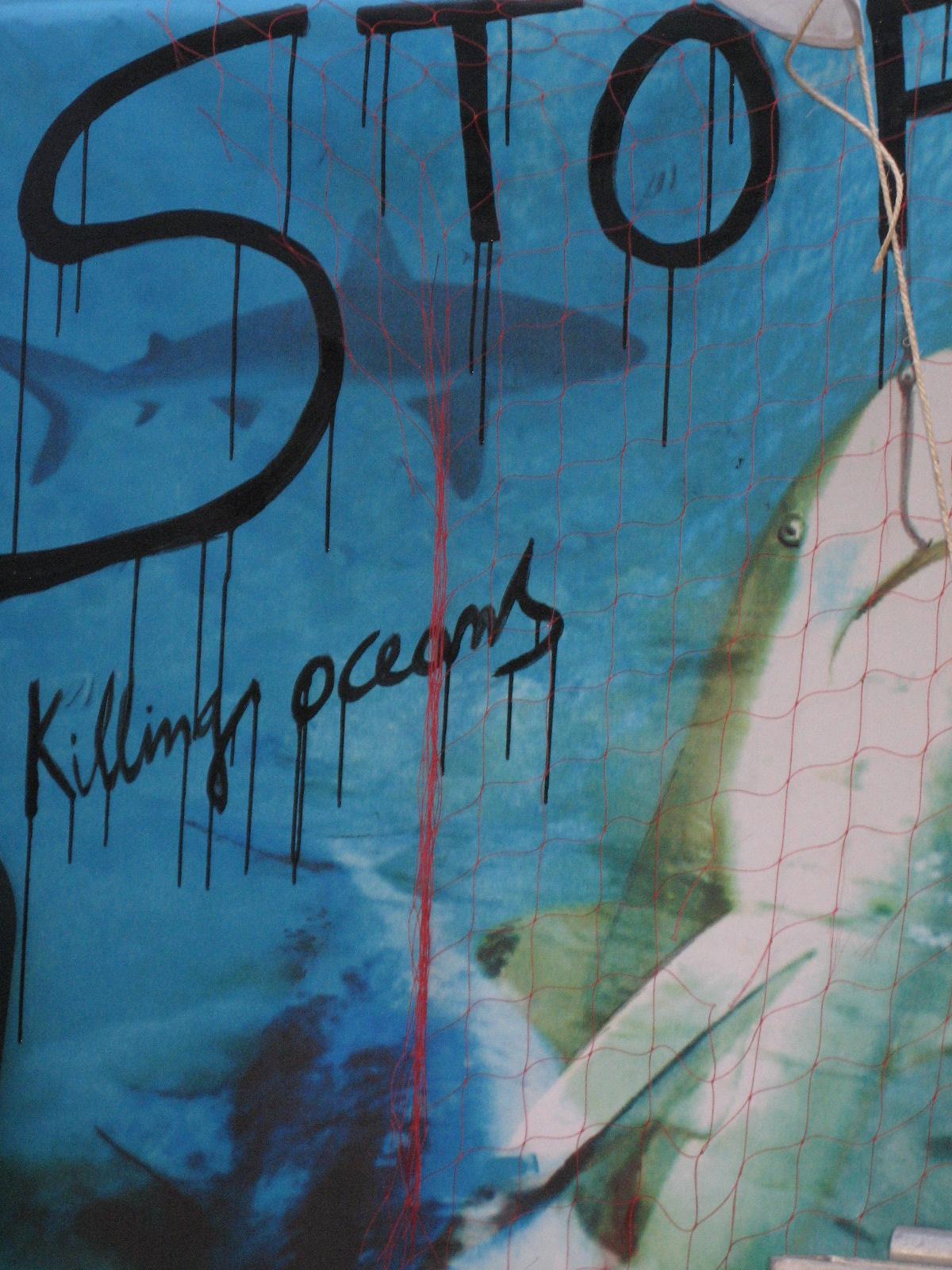 Lo stand dell'Ecole Bleue ha potuto contare anche su un'altra sinergia, quella dell'artista monegasca Beli (Belinda Bussotti) che ha prestato una delle sue opere: uno squalo. Un messaggio forte e chiaro, spiega l'artista "Contro la spietata caccia di questo animale, un'azione sostenuta anche dall'Ecole Bleue"