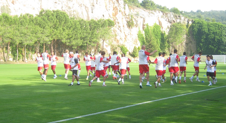 Il primo allenamento si è svolto chiaramente a ritmi blandi: un'ora di lavoro, suddivisa tra giri di campo, scatti, stretching e qualche esercizio finale con il pallone. Dai prossimi giorni, cercando anche di sfruttare il ritiro in Austria, si aumenteranno i carichi per giungere, si spera, nelle migliori condizioni all'esordio in campionato previsto nell'ultimo weekend di luglio.