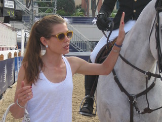 Elegante e raffinata anche quando è casual: eccola Charlotte Casiraghi, in tutta la sua bellezza, al Jumping International Montecarlo e qualche ora prima della Monaco Pro-Am Cup (la competizione per team di due atleti amatore + professionista che debutta alle 21.15 venerdì 29 giugno). Charlotte, disinvolta e sorridente fa naturalmente gli onori di casa sul campo monegasco. Ambasciatrice di bellezza e icona di questo sport. in questo pomeriggio con un tocco decisamente "patriottico": il bianco e rosso sono i colori nazionali del Principato.