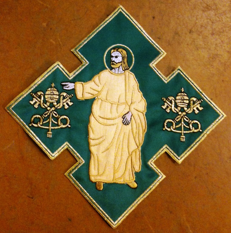 Il Mantello recherà sul lato sinistro il ricamo a colori dei vari ordini Equestri Pontifici ed in particolare: Ordine Piano o di Pio IX, Ordine di San Gregorio Magno, ordine di san Silvestro Papa, Medaglia Benemerenti.