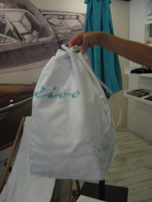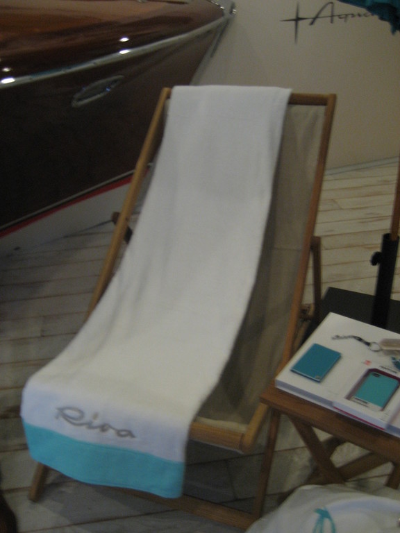 Oggi non solo armatori, ma anche appassionati del marchio possono acquistare le polo, i teli mare, le sacche, le cover per I-Phone, plaid in cachemere... tutto griffato Riva.