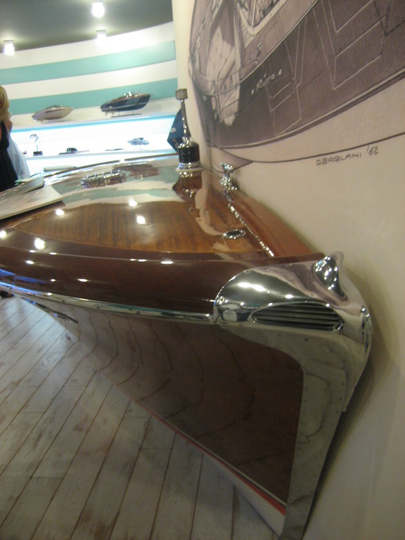 - In boutique la vetrina mostra quello che abbiamo creato: non soltano polo e cappellini, ma anche una linea di gioielli edizione limitata per il 170° annversario Riva. Ed anche arte: fotografie di Basilico e Cresci, libri ed anche modellini - sottolinea Chiara.