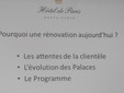 Camere più grandi: la prima esigenza che ha spinto l'SBM a sostenre questi lavori, che assieme allo Sporting d'Hiver ammonteranno ad un costo globale di 600 milioni di euro (250 milioni di euro solo per l'Hotel de Paris). Oggi l'Hotel conta il 32% di suite e il 68% di camere. A lavori ultimati sarà raggiunto il 45% di suite. Oggi le camere sono dai 23m2 a 60m2. Il restauro permetterà di avere camere non più piccole dei 42 m2.