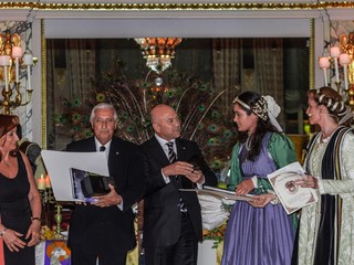 Grande interesse ed emozione anche per lo spettacolo “Danzando con la storia” che in una Place du Casino chiusa al traffico per l’occasione, ha incantato pubblico e partecipanti al ‘Convivio ai tempi di Piero’: clarine, rullio di tamburi, balestrieri e gentili damigelle in abiti rinascimentali e una acrobatica ‘dance des buffons’ hanno accolto l’arrivo degli invitati alla Salle Empire dell’Hotel de Paris, splendidamente decorata in stile quattrocentesco.
