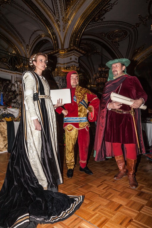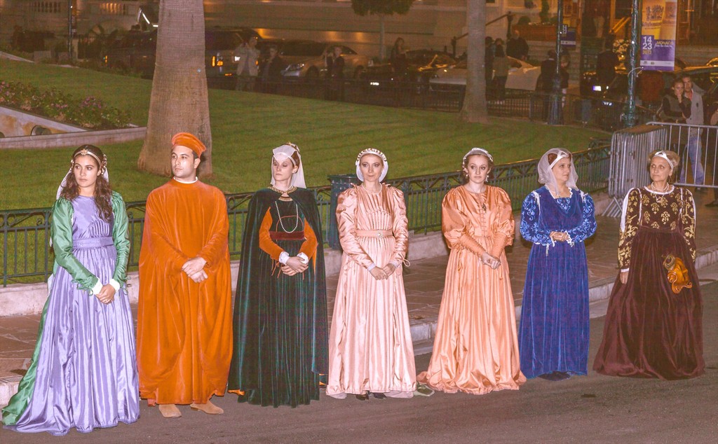 Grande interesse ed emozione anche per lo spettacolo “Danzando con la storia” che in una Place du Casino chiusa al traffico per l’occasione, ha incantato pubblico e partecipanti al ‘Convivio ai tempi di Piero’: clarine, rullio di tamburi, balestrieri e gentili damigelle in abiti rinascimentali e una acrobatica ‘dance des buffons’ hanno accolto l’arrivo degli invitati alla Salle Empire dell’Hotel de Paris, splendidamente decorata in stile quattrocentesco.