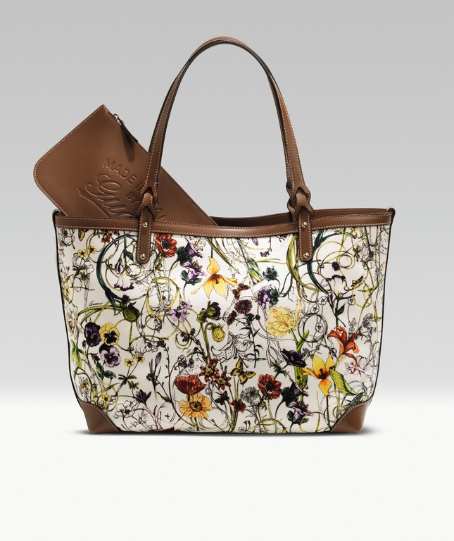 Sono 43 varietà di fiori, piante e insetti destinati ad un foulard, omaggio esclusivo per la Principessa Grace di Monaco. Ancora oggi questa fantasia e questa storia ci accompagnano, negli anni, con numerose interpretazioni e declinazioni sempre nuove. Flora torna, anche in questa primavera 2013, iconico bouquet, che il Direttore Creativo Frida Giannini ricoprì lungimirante, nella collezione di accessori per l’estate 2005.