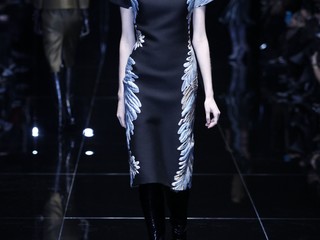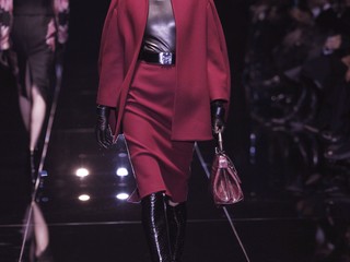 Costruita. La perfezione delle linee couture portate nel ready-to-wear. Nasce un nuovo tailleur con gonna. Vertiginoso. Di impatto. Le giacche sono caban oppure piccole, hanno spalle morbide egg-shape o in evidenza, costruite. Come quelle dei cappotti. La gonna è rigorosa, sotto il ginocchio, ma aperta da improvvisi spacchi. Alzata. Sottile. Per una nuova attenzione sul punto vita. Il little black dress trova nuove interpretazioni. Accollato o aperto a lasciare intravedere le scapole. Cinge il corpo e ne mette in evidenza la vita con inserti di pelle. Più fluido, languido, tagliato in sbieco. In raso lucido effetto bagnato. Il cappotto ha le forme aderenti, bustier, come se fosse un robe-manteau. Oppure è over, unico accenno al guardaroba maschile in una collezione volutamente ladylike. Anche il pantalone è femminile. Affusolato. Corto. A chiudere ogni look, i tocchi sexy e irreverenti delle T-shirt in pitone o pelle, dei guanti e delle calze a rete con la riga, leitmotiv di tutte le uscite.