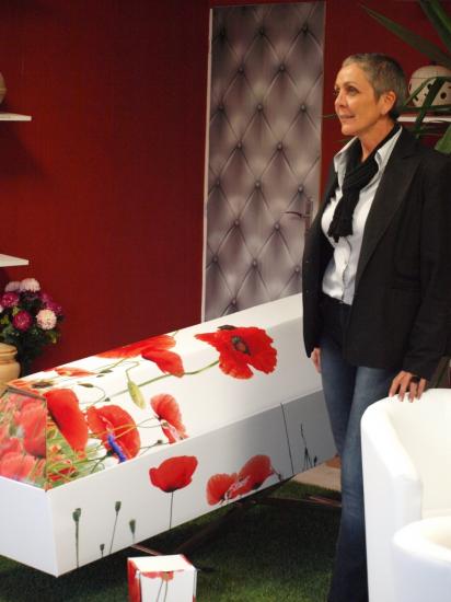 Si chiama Brigitte Dunas-Sabatier e si trova a Cannes, si occupa di pompe funebri. Questa attraente imprenditrice della Costa Azzurra distribuisce bare di cartone e urne crematorie di cartone esclusiva di una ditta francese.
