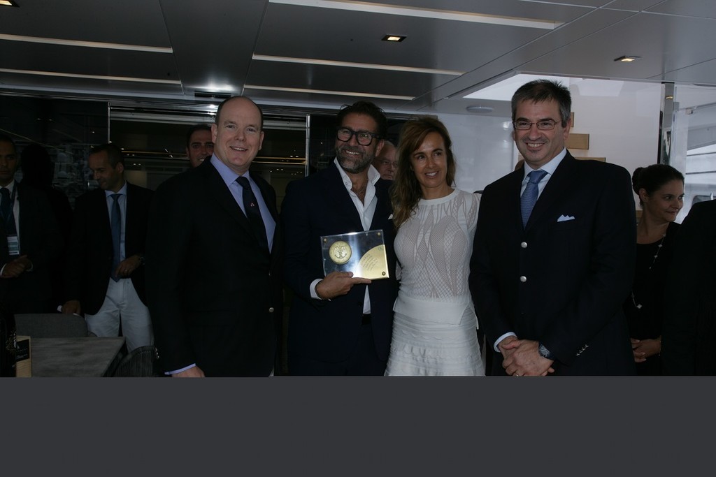 1 - al M/Y Entourage l’onore più grande di ospitare a bordo il Principe di Monaco Alberto II in occasione della cerimonia di consegna della targa relativa alla certificazione Green Plus rilasciata allo yacht dal RINA (Registro Italiano Navale).