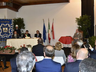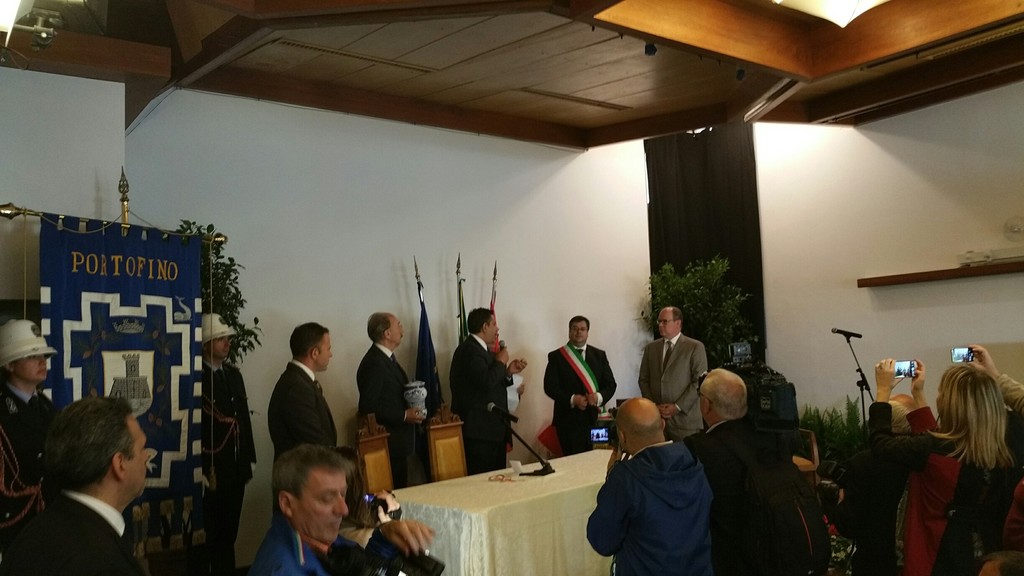 Il cerimoniere dell’evento Amedeo Solimano, responsabile dei rapporti internazionali del comune di Portofino (colui che attraverso i propri contatti ha proposto l’onorificenza) ha introdotto la cerimonia e presentato gli ospiti. Il sindaco D’Alia in un breve discorso, ha ricordato i legami anche affettivi con la Famiglia Grimaldi, i suoi ricordi degli anni 60 raccontati dal nonno, ed ha letto le motivazioni del conferimento. Il Principe Alberto di Monaco ha poi ringraziato a sua volta, ed in due lingue ha voluto anch’egli percorrere la storia delle relazioni tra Monaco e Portofino.