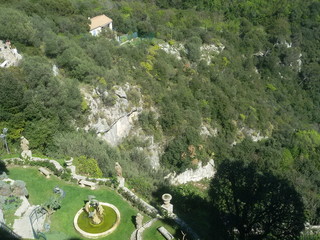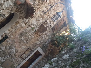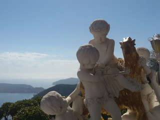 Sbucati sulla piazzetta, il colpo d'occhio è contrastante: da una parte uno scorcio valorizzato con gusto, cosa in cui i Francesi sono maestri, con alberelli, fiori e piante rampicanti; dall'altra l'evidente alterazione del paesaggio costiero causata da un'edilizia senza scrupoli. Ciò nonostante, il panorama dell'“azzurro capovolto che riflette il cielo”, prendendo in prestito le parole da Roberto Vecchioni, è da mozzare il fiato e sulla sommità del promontorio si distingue la cupola di uno degli osservatori astronomici, che costellano la Côte d'Azur. Abbandoniamo la via principale per raggiungere uno dei posti con maggior attrattiva di Eze, che dà lavoro anche a degli Italiani: il lussuosissimo hotel Château de la Chèvre d'Or con dei mirabili giardini barocchi. Dalla terrazza la vista spazia fino alla penisola di Saint-Jean-Cap-Ferrat... "E 'l naufragar m'è dolce in questo mare" (Giacomo Leopardi).