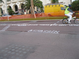 Sono trascorsi quasi tre mesi dalla strage di Nizza, ma la ferita resta aperta e le reazioni delle persone continuano ad essere tante e diverse. Davanti al Palais de la Mediterranée, sulla Promenade a Nizza, nel luogo ove venne arrestata la corsa del camion che aveva provocato la strage ed è stato ucciso il terrorista che ne era alla guida, sono apparse questa mattina delle scritte inequivocabili.