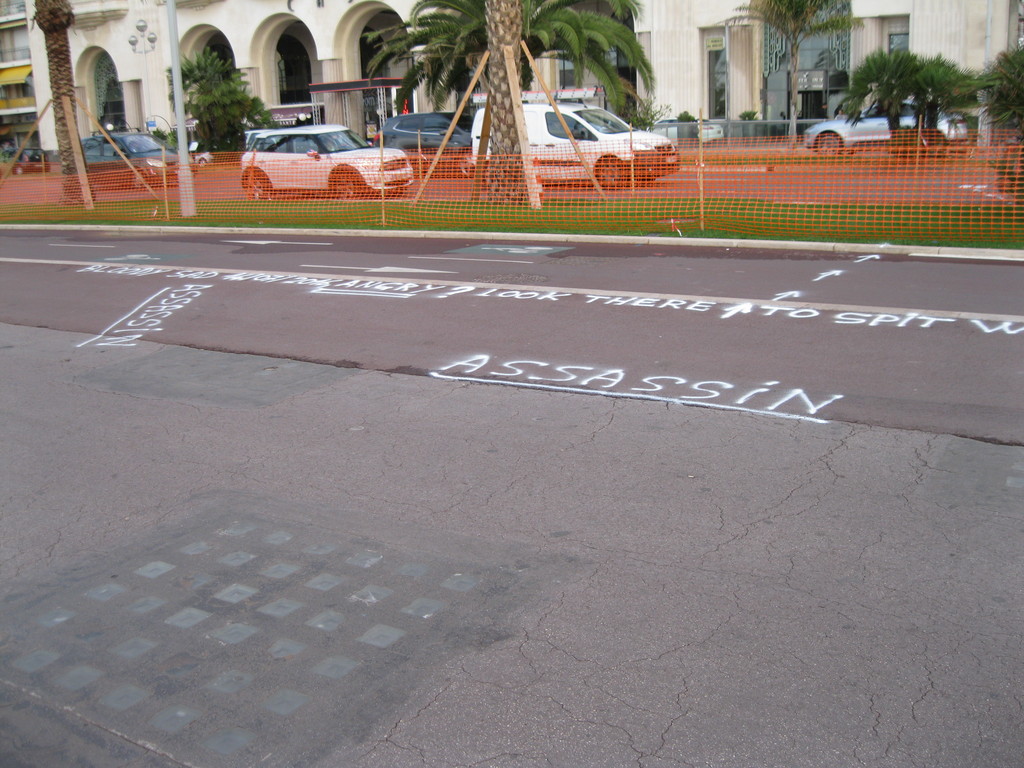 Sono trascorsi quasi tre mesi dalla strage di Nizza, ma la ferita resta aperta e le reazioni delle persone continuano ad essere tante e diverse. Davanti al Palais de la Mediterranée, sulla Promenade a Nizza, nel luogo ove venne arrestata la corsa del camion che aveva provocato la strage ed è stato ucciso il terrorista che ne era alla guida, sono apparse questa mattina delle scritte inequivocabili.