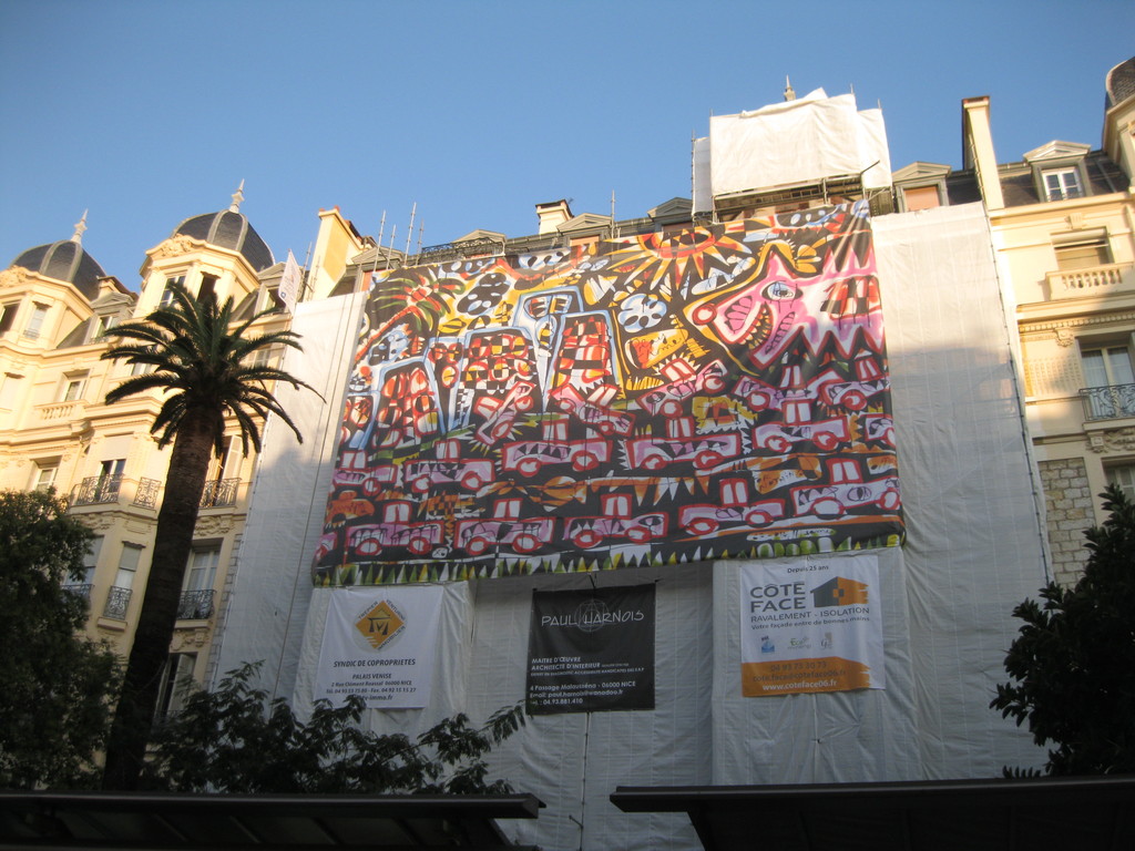 A due passi dalla Gare du Sud e dell’Avenue Jean-Médecin, è stato installato il più grosso pannello mai posto a Nizza su un palazzo a copertura di un ponteggio.