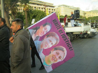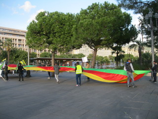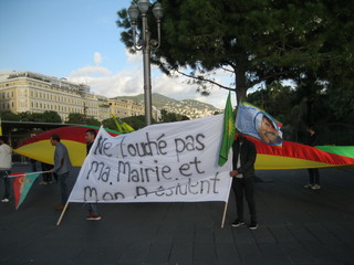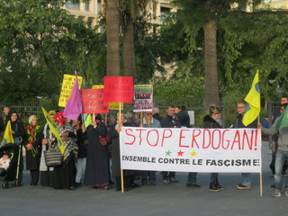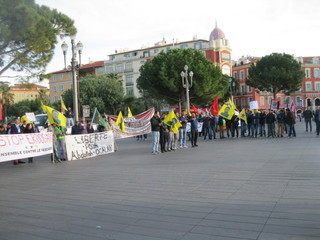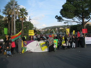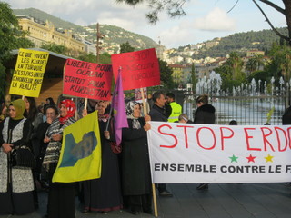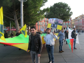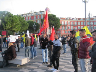 Manifestazione di un centinaio di curdi che si sono dati appuntamento in Place Massena a Nizza per protestare contro l’arresto di alcuni deputati curdi da parte della polizia turca.