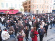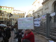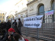 Davanti al palazzo di giustizia di Nizza si sono dati appuntamento circa 300 cittadini che hanno manifestato solidarietà a Cédric Herrou con slogan, cartelli e canti.