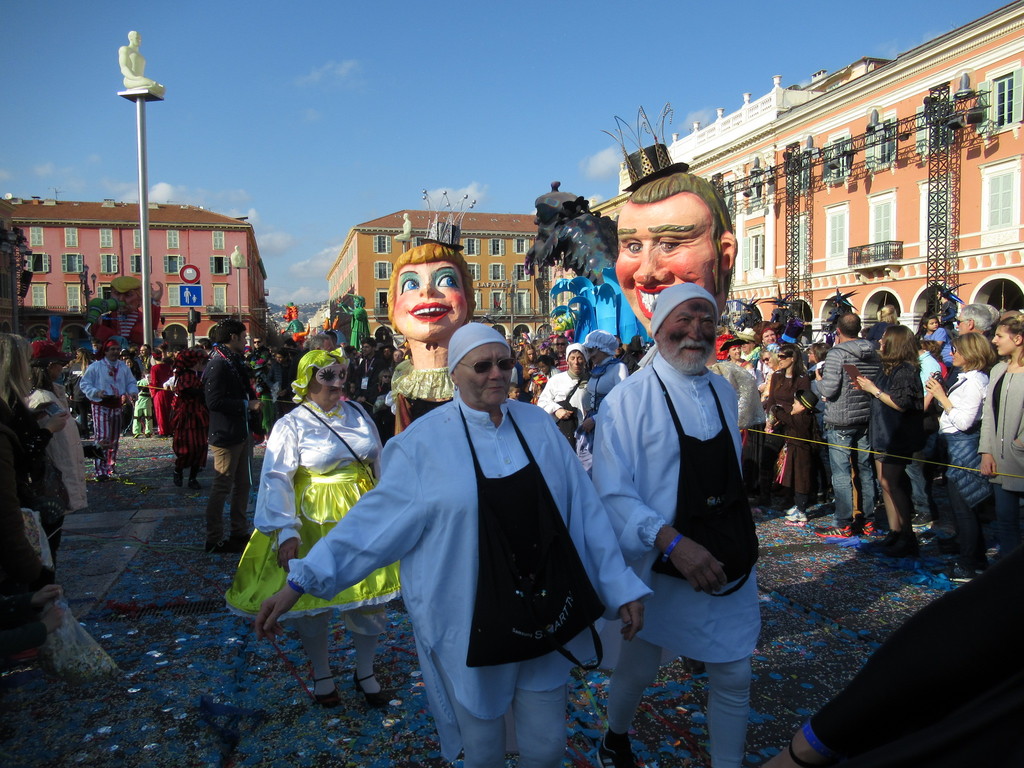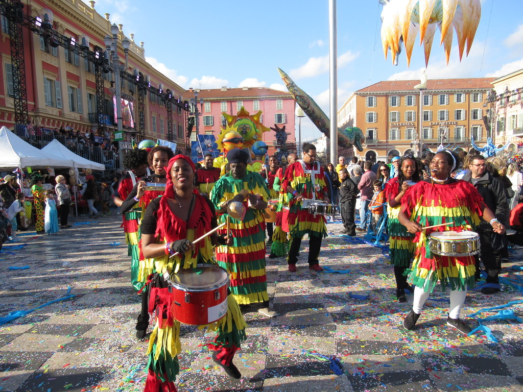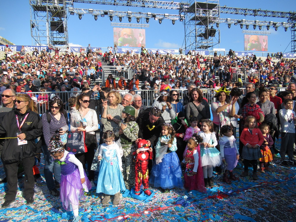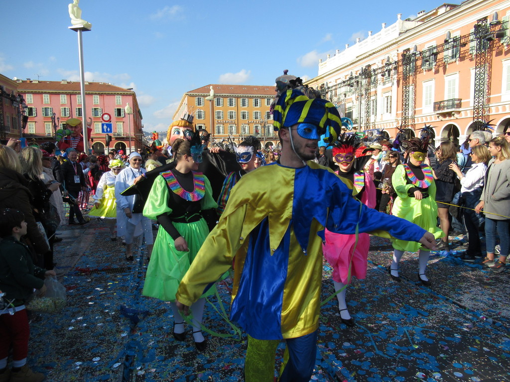 Allegri gruppi di nizzardi, di tutte le età, che hanno sfilato in mezzo ai carri, hanno ballato, hanno lanciato coriandoli e stelle filanti.