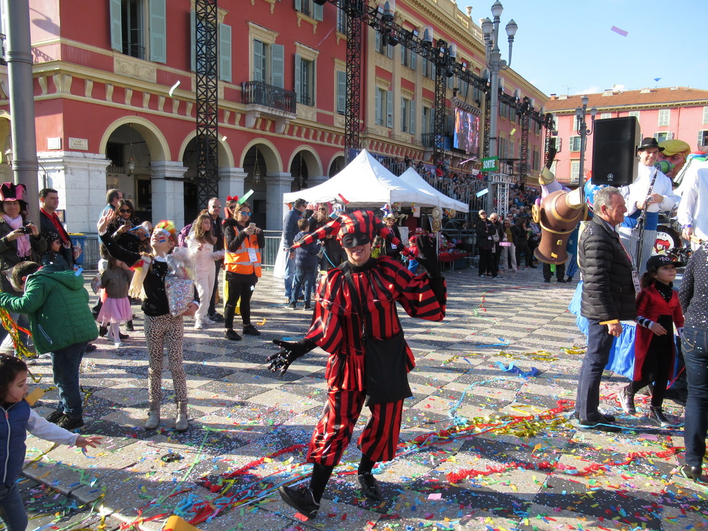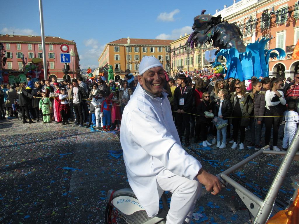 Bambini, giovani, adulti e anziani: tutti in maschera, tutti a vivere un carnevale pomeridiano col cielo azzurro e la temperatura primaverile, tanto per ricordare ai tanti turisti che siamo in Costa Azzurra.