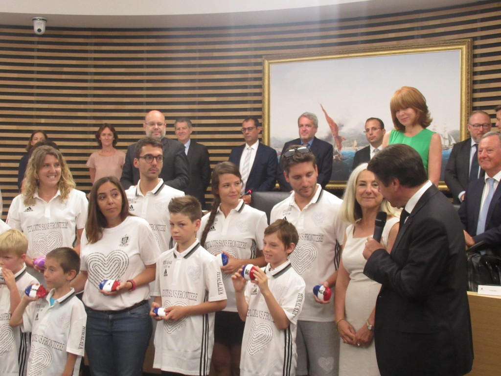 I galets sono stati prima portati dai bambini in Consiglio Municipale a Nizza, accolti dal Sindaco Christian Estrosi e da tutta l’assemblea in piedi.