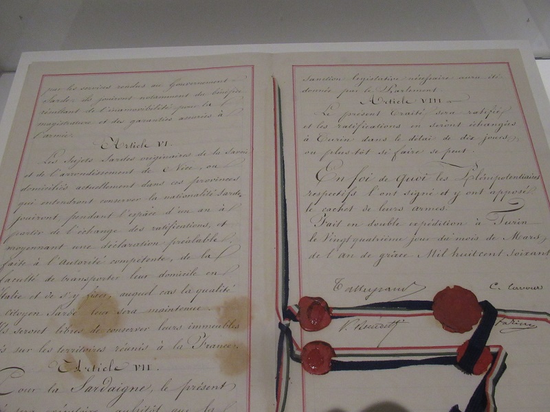 E così via, fino ai rapporti con i Savoia e a quelli con la Francia, per poi giungere alle due grandi guerre, al tentativo italiano di annettere nuovamente la città, all’occupazione nazista, alla persecuzione degli ebrei, per arrivare ai giorni nostri, fino al quadro che evoca l’attentato del 14 luglio.