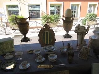 Il suo banco, il numero 34, si trova a destra, quasi al fondo della piazza, di fronte ad un ufficio comunale: è un esperto ed appassionato antiquario.