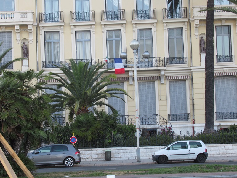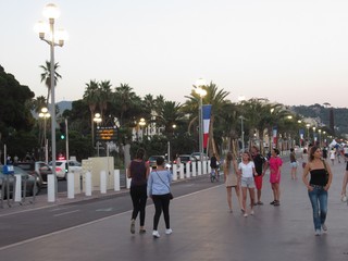 Tanti turisti che passeggiano, la Promenade des Anglais, tutta imbandierata, affollata di persone che , per la prima volta dopo tanti mesi, mostra se stessa, il rinnovamento che ha subito, le misure di sicurezza che sono state installate.