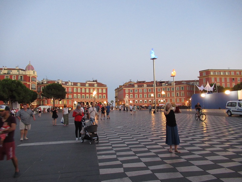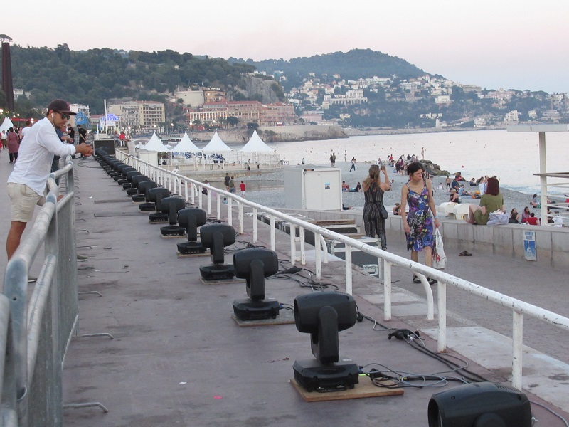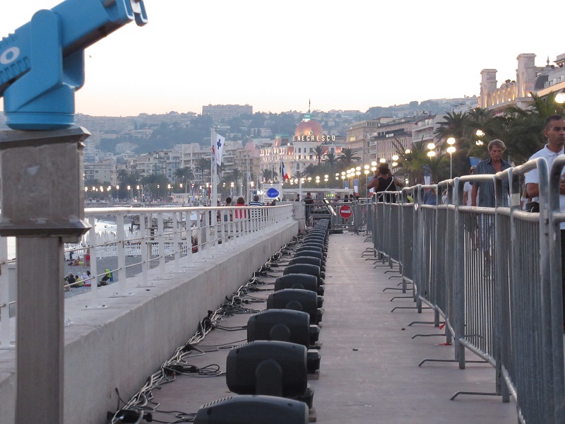 La sera della vigilia trascorre lentamente, a Nizza: tanti turisti, tanti operai intenti a lavorare per gli ultimi preparativi prima della giornata del ricordo e della memoria.