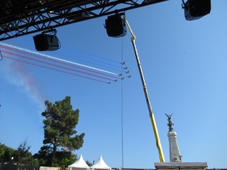 Con il cielo colorato dagli aerei della pattuglia acrobatica che lasciavano una scia tricolore.
