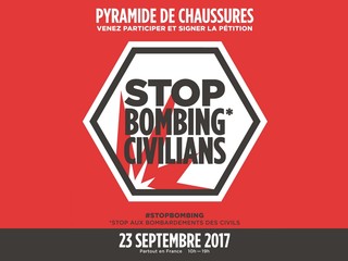La ONG che partecipano alle 29 iniziative contemporanee in Francia intendono raccogliere un milione di firme contro la pratica del bombardamento in aree popolate entro il settembre 2018.