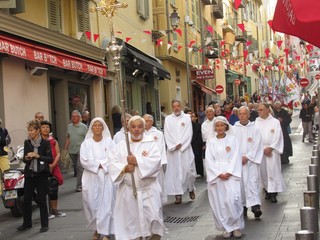 La statua della Santa ha così percorso le stradine del Vieux Nice, accompagnata dalla banda musicale dei pompieri, dai gruppi folkloristici, da quelli penitenziali, dal sindaco Christian Estrosi e da molti amministratori locali ed anche dal popolo.