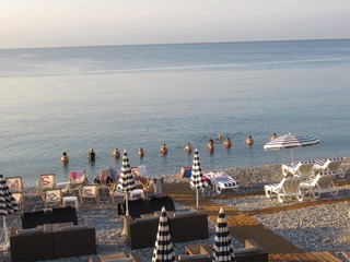 Una tranquilla domenica d’autunno, con l’acqua del mare sopra i 20 gradi, il sole che picchia forte, le spiagge e sufficientemente affollate e la Promenade des Anglais come a inizio estate.