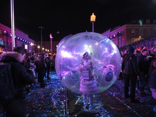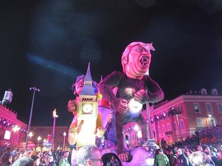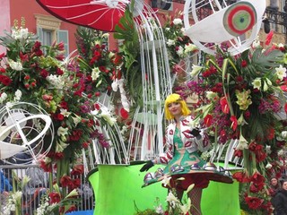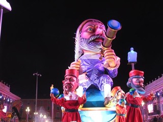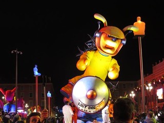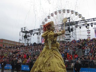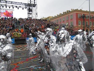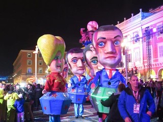 A sera, con un clima decisamente migliore, una vera folla si é concessa due ore di svago: carri carnevaleschi, grosse teste, gruppi folkloristici, il solito, collaudato mix, che fa del Carnevale di Nizza uno dei più belli al mondo assieme con quello di Rio e di Venezia.