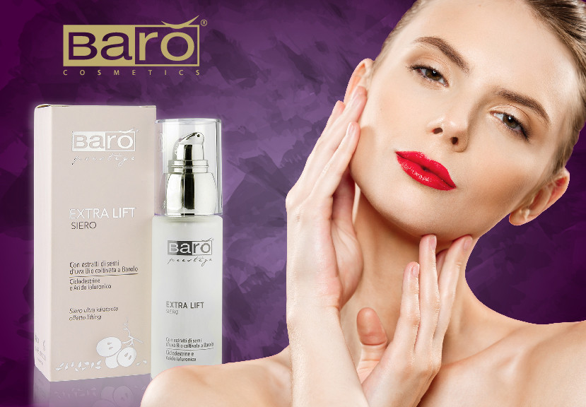 Il Siero Barò Extra Lift, PREVIENE LA COMPARSA DELLE RUGHE grazie alle proprietà naturali dei polifenoli. RIGENERA LA PELLE IN PROFONDITÁ in virtù degli estratti di uva di Barolo, uniti all’acido ialuronico e le ciclodestrine, tutte sostanze vegetali, che agiscono in sinergia per rigenerare velocemente la cute danneggiata. Penetrando negli strati più profondi della pelle, rendendola più levigata e giovane. STIMOLA IL COLLAGENE NATURALE le cui fibre diminuiscono con l'invecchiamento, portando la pelle a perdere la sua elasticità e portando la formazione delle rughe. La formula del Siero Extra Lift stimola la produzione di collagene, per un effetto filler e una pelle più giovane.