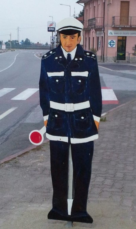 La storia di Beppe il vigile è conosciuta da molti che navigano sui social: su Facebook, ha persino una sua pagina molto cliccata e seguita. Si tratta della controfigura di un vigile urbano, posto sul ciglio dell’arteria che congiunge Cuneo con Asti, all’interno dell’abitato di una frazione di Fossano che si chiama Murazzo.